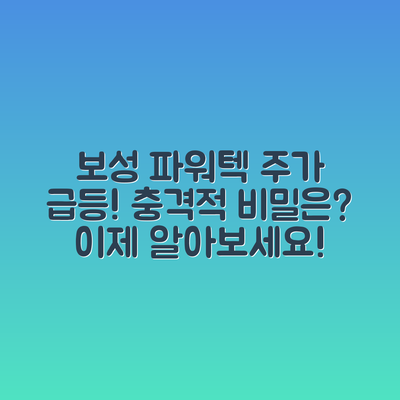 최근 보성 파워텍의 주가 급등은 많은 투자자들에게 반가운 뉴스이지만, 동시에 그 배경에 대한 의문을 낳고 있습니다.
