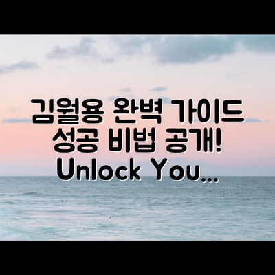 김월용의 성공 비법은 체계적인 계획과 실행의 결과입니다. 이 가이드를 통해 그 비법을 단계별로 살펴보겠습니다.