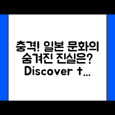 일본 문화의 매력을 탐구하고 싶다면, 다양한 단계로 쪼개어 접근하는 것이 좋습니다. 각각의 단계를 따라가며 일본의 독특한 문화에 대해 깊이 이해해보세요.